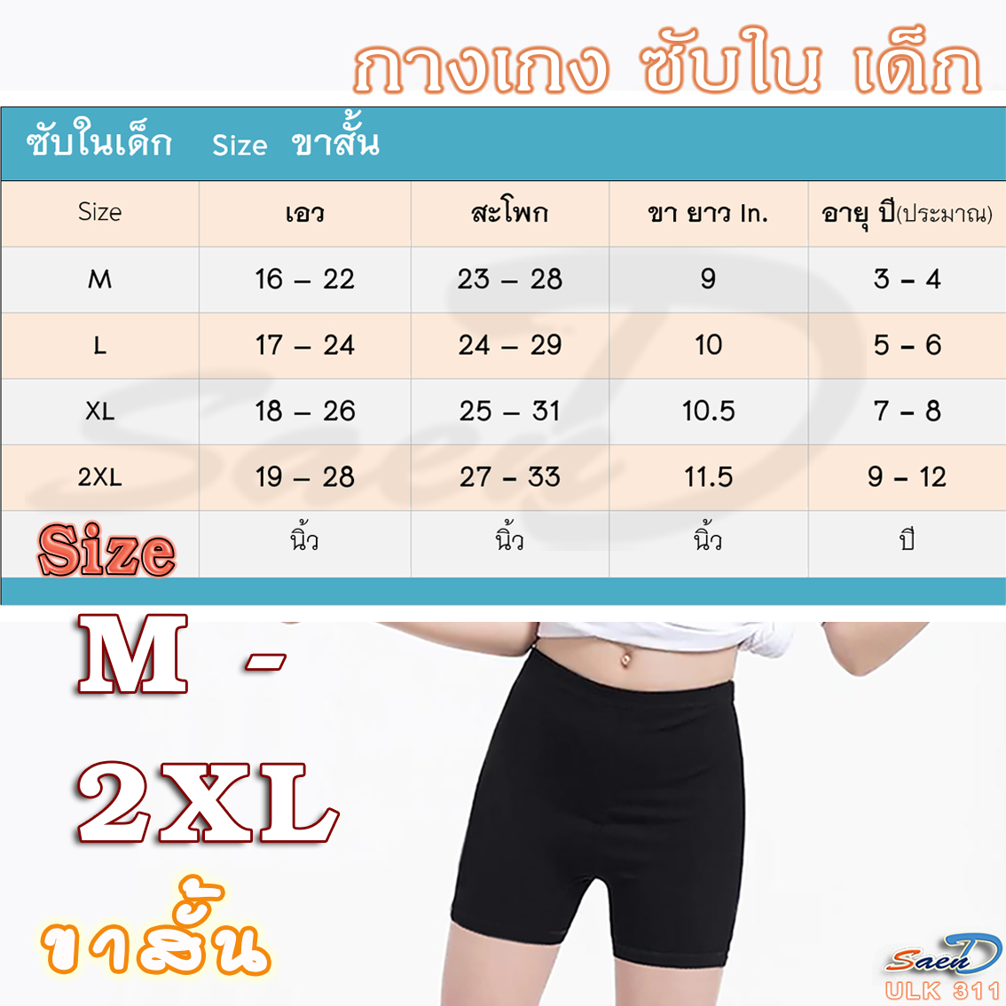 กางเกงซับในเด็ก มี 2 แบบ  ;   แบบขาสั้น  ,  แบบยาวเหนือเข่า