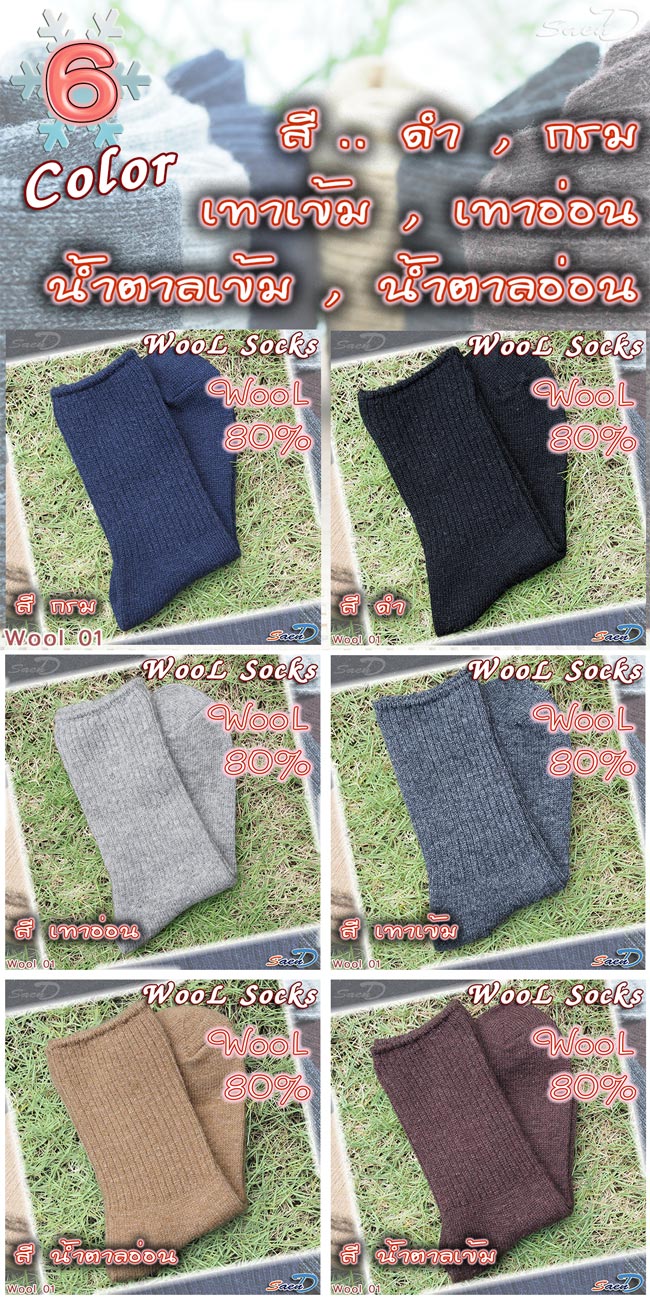 ถุงเท้าWool ถุงเท้าขนแกะ ถุงเท้าผสมขนสัตว์ ใส่สำหรับกันหนาวในช่วงหน้าหนาว จะเป็นถุงเท้าที่ทำมาจากขนสัตว์ ซึ่งจะมีความแน่นของเนื้อผ้า ทำให้เวลาใส่จะมีความอบอุ่นมาก